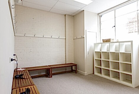 Hardwood floors in our upstairs studio and enviro friendly cork flooring in our downstairs studio